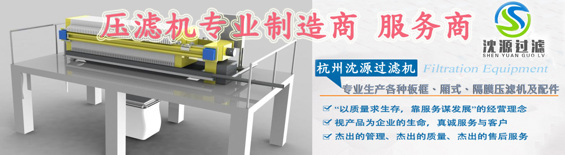 杭州沈源過濾機有限公司擁有先進的生產設備,齊全的檢測手段,完善的質保體系,并與多家科研院建立了牢固的合作關系,是集設計開發、生產制造、安裝調試、售后服務為一體的過濾機專業生產企業,生產的主要設備有壓濾機系列隔膜壓濾機、廂式、帶式、板框壓濾機等各系列設備,以及各規格的濾布、濾板等配件。